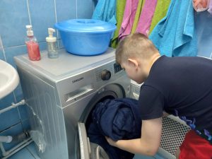 - Одежда: учить детей одеваться и раздеваться, ухаживать за одеждой и обувью (стирка, глажка, мелкий ремонт).